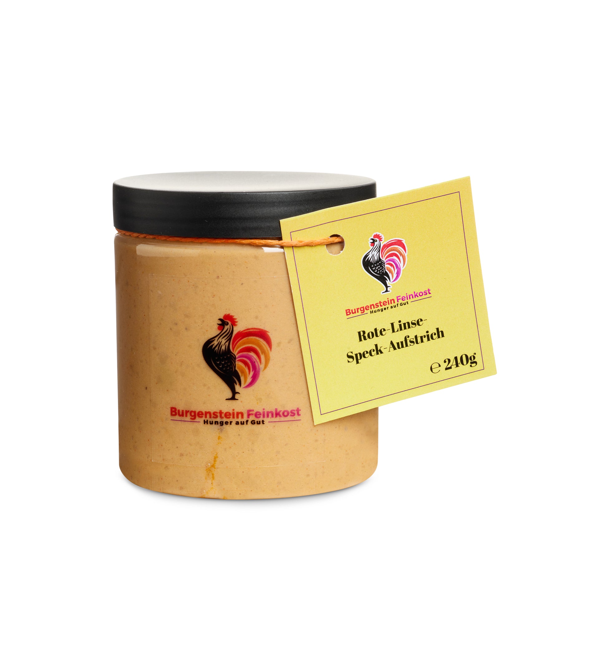 Dieser herzhafte Aufstrich schmeckt wie Linsen mit Speck. Österreichische rote Linsen und Bauchspeck geben dem Aufstrich die typische Geschmacksnote.